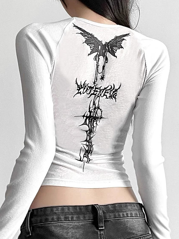 Langärmlige Strickwaren mit Flügel-Print