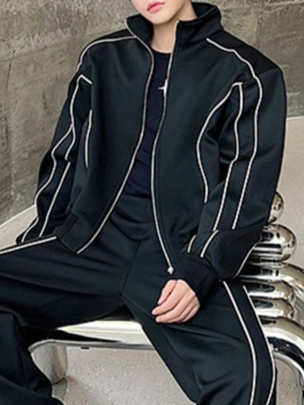 Herren-Trainingsanzug-Set mit Kontrastfarben-Linie und Splice-Langarm