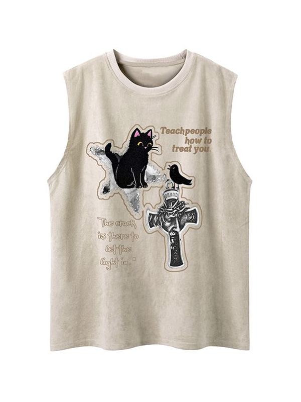 Weste mit gewaschener Vintage-Kreuzgrafik für Herren