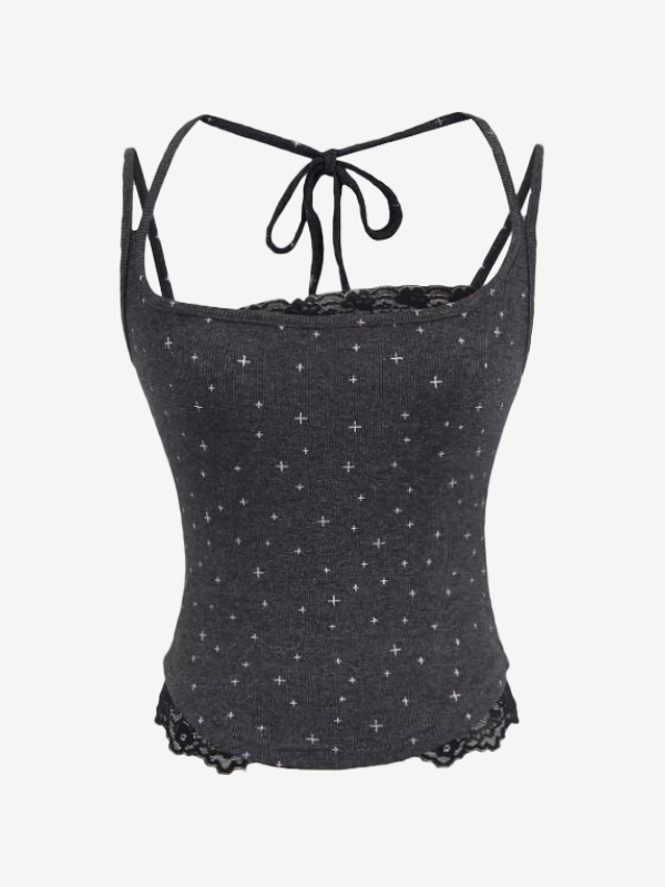 Camisole mit Schmetterlings-Patchworkmuster und Netzstoff