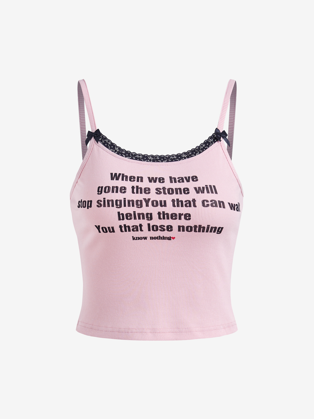 Schlichtes, schmal geschnittenes Cami-Oberteil mit Schleife und Spitze