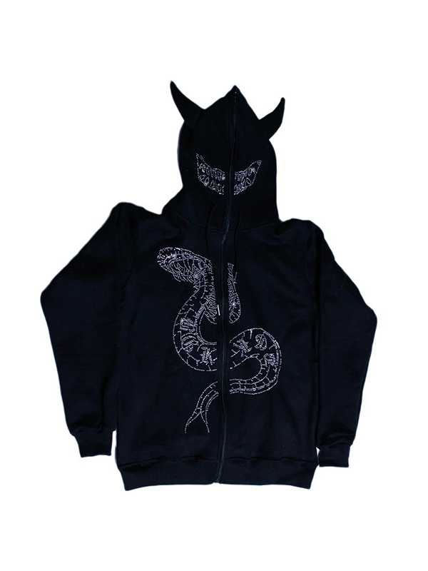 Übergroßer Kapuzenpullover mit Drachen-Strass für Herren