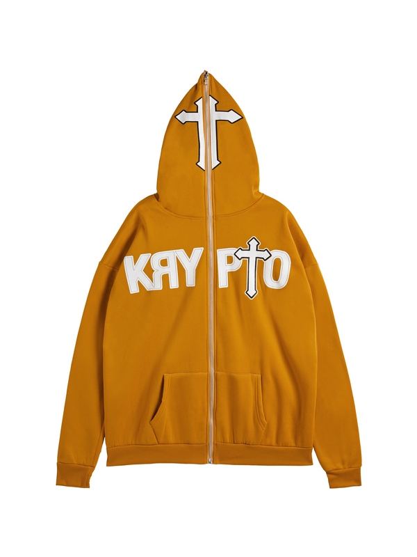 Übergroßer Kapuzenpullover mit durchgehendem Reißverschluss und Hip-Pop-Print für Herren