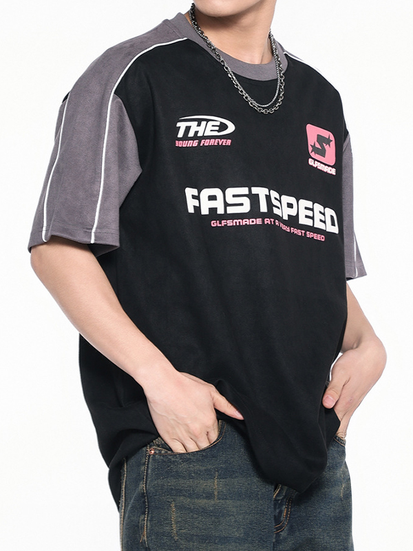 Motorrad Unisex Gespleißtes Raglanärmel Übergroßes Kurzarm-T-Shirt
