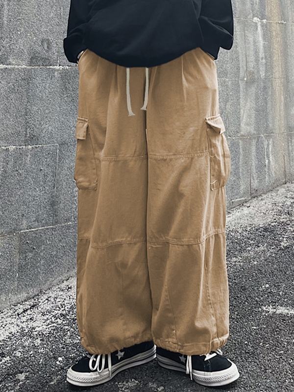 Herren-Cargohose im Vintage-Stil mit Taschen, Kordelzug und gebundenen Füßen