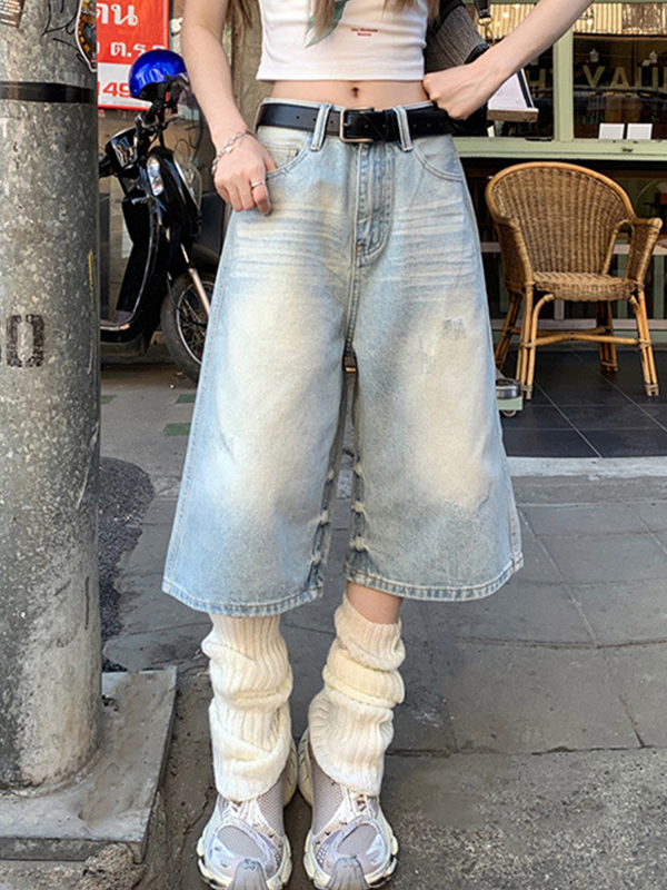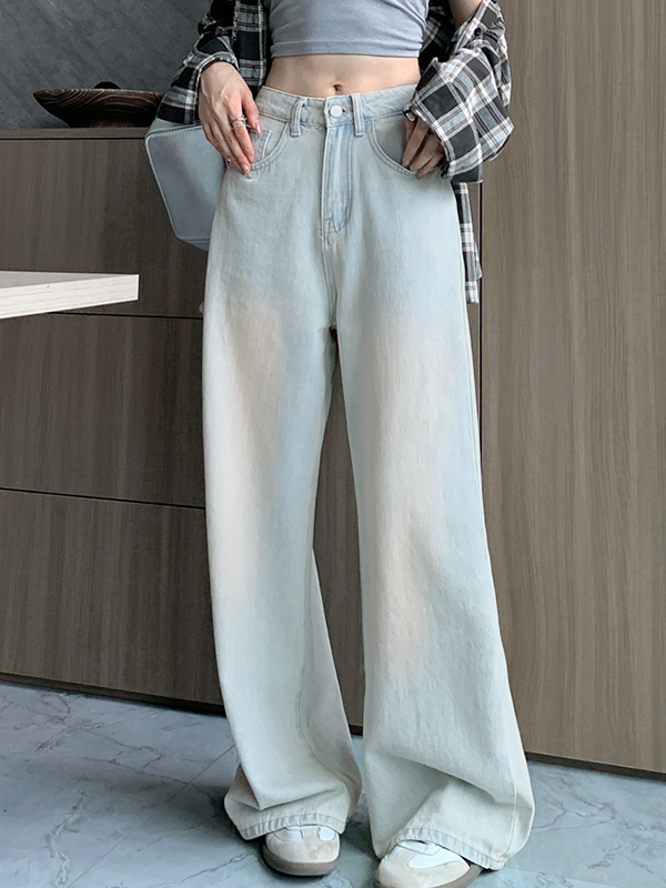 Hell gewaschene Boyfriend-Jeans mit hoher Taille