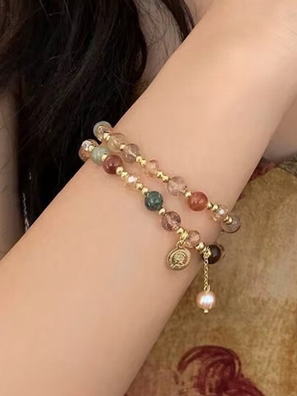 Doppellagiges Armband aus Stein und Perlen