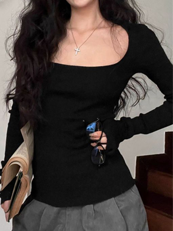 Einfarbige Langarm-Strickwaren