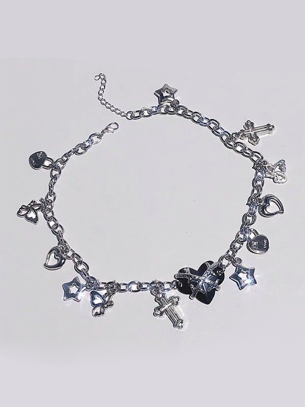 Gothic Punk-Kreuz-Herz-Charme-Halskette