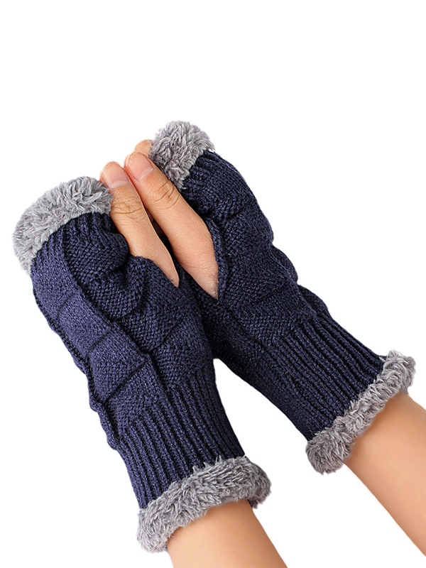 Fingerlose Strickhandschuhe mit dickem, warmem Fleecefutter