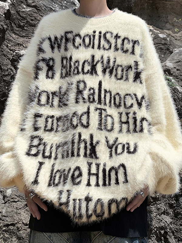 Fuzzy-Pullover aus Jacquard für Herren mit Buchstaben