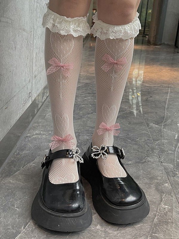 Schleife verschönern Kniestrümpfe mit Herzmuster