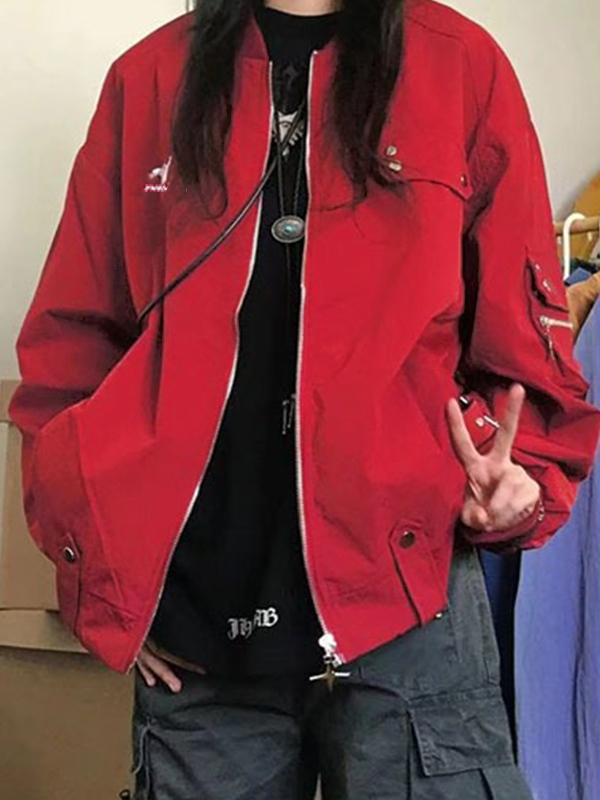 Dünne Jacke mit mehreren Taschen und Druckknopfdekor