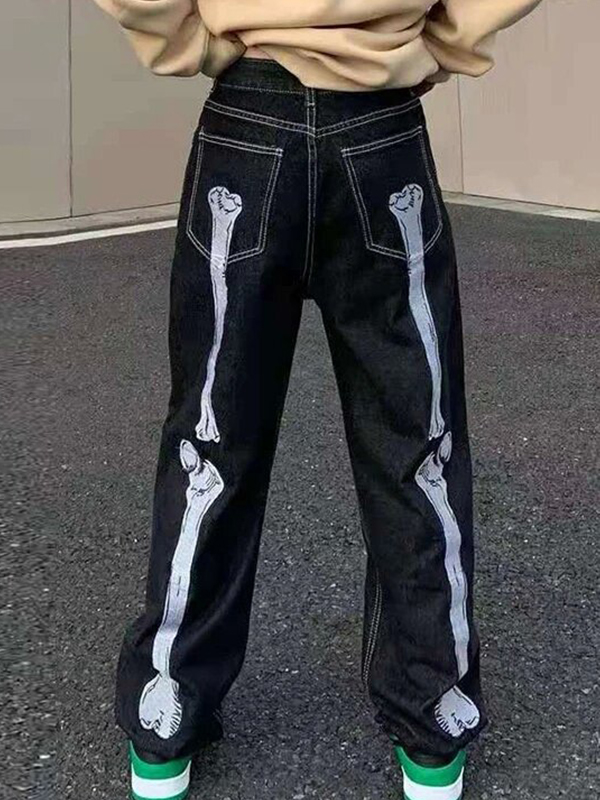 Lockere Jeans für Herren mit Totenkopf-Print
