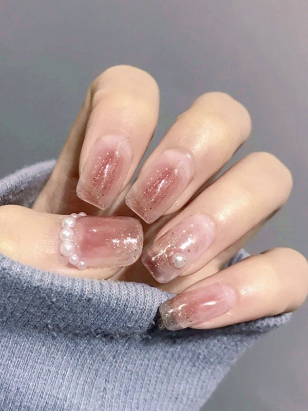 24 Stück Faux Pearl Decor verschwommen rosa Kunstnägel